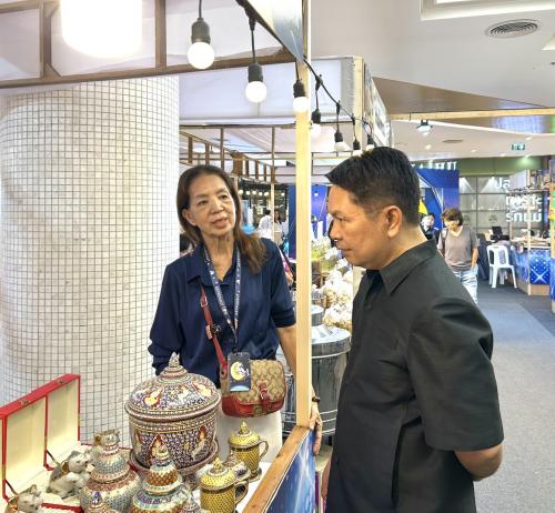 นายคมสิทธิ์ สุริยวรรณ พัฒนาการจังหวัดสมุทรสาคร พร้อมด้วยนายอรรถพงศ์ สงวนเดือน ผู้อำนวยการกลุ่มงานส่งเสริมการพัฒนาชุมชน นายพิเศษ นันต๊ะหม่น ผู้อำนวยการกลุ่มงานประสานและสนับสนุนการบริหารงานพัฒนาชุมชน นางณัฐภรณ์ ก่อนกำเนิด พัฒนาการอำเภอเมืองสมุทรสาคร และเจ้าหน้าที่พัฒนาชุมชนจังหวัด เยี่ยมชมบูทเพื่อให้กำลังใจผู้ผลิต ผู้ประกอบการ OTOP พร้อมทั้งอุดหนุนผลิตภัณฑ์ที่เข้าร่วมจัดแสดงและจำหน่ายภายในงาน “OTOP PREMIUM สุดยอดภูมิปัญญาสมุทรสาคร สู่เมืองมหานคร” ซึ่งการจัดงานในครั้งนี้มีวัตถุประสงค์เพื่อเพิ่มช่องทางการจำหน่ายสินค้าของผู้ผลิต ผู้ประกอบการ OTOP จังหวัดสมุทรสาคร มากกว่า 40 ร้านค้า อาธิ เบญจรงค์ อาหารทะเลแปรรูป น้ำช่อดอกมะพร้าว น้ำตาลมะพร้าว และอื่นๆ อีกมากมาย อีกทั้งต้องการให้ผู้เข้าชมงานได้สัมผัสถึงเอกลักษณ์ อัตลักษณ์ และเสน่ห์ของผลิตภัณฑ์ท้องถิ่น อันเป็นภูมิปัญญาที่ทรงคุณค่าของชาวสมุทรสาคร ให้เป็นที่รู้จักอย่างแพร่หลาย โดยกำหนดจัดงานฯ ระหว่างวันที่ 25 – 29 ตุลาคม 2568 ณ ลานกิจกรรมชั้น G ศูนย์การค้าเซนทรัลปิ่นเกล้า ถนนบรมราชชนนี แขวงอรุณอมรินทร์ เขตบางกอกน้อย กรุงเทพมหานคร