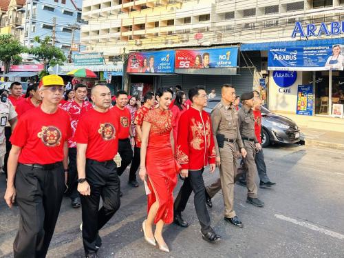 นายดำรงค์ศักดิ์ ยอดทองดี รองผู้ว่าราชการจังหวัดสมุทรสาคร เป็นประธานในพิธีและนำขบวนแห่เทพเจ้าไช้ซิ่งเอี้ย ภายใต้เทศกาล “ตรุษจีน เล่ง เกีย ฉู่ สืบสานตำนานมังกร 2569” พร้อมด้วยหัวหน้าส่วนราชการ หน่วยงานภาครัฐ ภาคเอกชน และสื่อมวลชนร่วมขบวนดังกล่าว โดยขบวนเริ่มเคลื่อนจากศูนย์การค้าแลนด์มาร์ค มหาชัย แห่ไปรอบตลาดมหาชัย เพื่ออัญเชิญเทพเจ้าไช้ซิ่งเอี้ยไปประทับ ณ ศาลเจ้าชั่วคราว บริเวณริมเขื่อนหน้าศาลเจ้าพ่อหลักเมืองสมุทรสาคร ซึ่งเป็นสถานที่จัดงาน