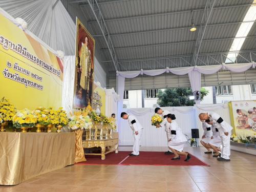 วันที่ 2 มีนาคม 2569 เวลา 07.00 น. ณ ลานสาครบุรี ศาลากลางจังหวัดสมุทรสาคร นายอำนาจ เจริญศรี ผู้ว่าราชการจังหวัดสมุทรสาคร ประธานพิธีวางพานพุ่มดอกไม้สดถวายราชสักการะ เพื่อน้อมรำลึกในพระมหากรุณาธิคุณของพระบาทสมเด็จพระบรมชนกาธิเบศร มหาภูมิพลอดุลยเดชมหาราช บรมนาถบพิตร เนื่องใน “วันมาตรฐานฝีมือแรงงานแห่งชาติ” ประจำปี พ.ศ. 2569 พร้อมด้วย ผู้พิพากษา อัยการ ทหาร ตำรวจ หัวหน้าส่วนราชการระดับจังหวัดและอำเภอ เข้าร่วมพิธีฯ