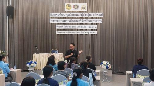 วันที่ 6 มีนาคม 2569 เวลา 08.30 น. ณ ห้องประชุมแกรนด์ไดมอนด์ โรงแรมแกรนด์ อินเตอร์ โฮเทล ตำบลโคกขาม อำเภอเมืองสมุทรสาคร จังหวัดสมุทรสาคร นายคมสิทธิ์ สุริยวรรณ พัฒนาการจังหวัดสมุทรสาคร เป็นประธานในพิธีเปิดกิจกรรมพัฒนาบุคลิกภาพแก่ผู้นำกลุ่มองค์กรสตรี เพื่อให้สตรีมีความรู้ ความเข้าใจ และเกิดแรงบัลดาลใจในการพัฒนาบุคลิกภาพ พัฒนาคุณลักษณะที่ดี และเสริมสร้างศักยภาพความเชื่อมั่นในการพัฒนาตนเอง กลุ่มเป้าหมายประกอบด้วย ผู้นำกลุ่มองค์กรสตรีในจังหวัดสมุทรสาคร จำนวน 50 คน มีกิจกรรมดังนี้ การพัฒนาบุคลิกภาพการยืน การเดิน การนั่ง การพูดในที่สาธารณะ โดยมีนางสาวพินยุดา แจ่มจันทร์ศรี แรงงานจังหวัดสมุทรสาคร วิทยากร และนางสาวนรีรัตน์ คะสุดใจ (Pik makeup) สอนการแต่งหน้าโดย และคณะ