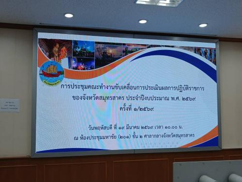 วันที่ 19 มีนาคม 2569 เวลา 09.30 น. ณ ห้องประชุมมหาชัย (201) ชั้น 2 ศาลากลางจังหวัดสมุทรสาคร นายอำนาจ เจริญศรี ผู้ว่าราชการจังหวัดสมุทรสาคร มอบหมายให้ นายดำรงค์ศักดิ์ ยอดทองดี รองผู้ว่าราชการจังหวัดสมุทรสาคร เป็นประธานการประชุมคณะทำงานขับเคลื่อนการประเมินผลการปฏิบัติราชการของจังหวัดสมุทรสาคร ประจำปีงบประมาณ พ.ศ. 2569 ครั้งที่ 1/2569 เพื่อพิจารณาผลการประเมินส่วนราชการตั้งแต่วันที่ 1 ตุลาคม 2568 ถึง 28 กุมภาพันธ์ 2569 และปัญหาและอุปสรรค ในการขับเคลื่อนงานตัวชี้วัดตามการประเมินผลการปฏิบัติราชการของจังหวัดสมุทรสาคร ประจำปีงบประมาณ พ.ศ. 2569 จากส่วนราชการที่รับผิดชอบตัวชี้วัด โดยสำนักงานพัฒนาชุมชนจังหวัดสมุทรสาคร มีหน้าที่รับผิดชอบเรื่อง รายได้จากการจำหน่ายผลิตภัณฑ์ชุมชน (OTOP)